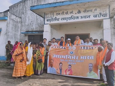 टंडवा : प्रखंड अंतर्गत खधैया टाउन हॉल में आत्मनिर्भर भारत कार्यक्रम के तहत युवा महिला सम्मेलन किया गया। कार्यक्रम की अध्यक्षता युवा मोर्चा टंडवा मंडल संयोजक संदीप कुमार सिंह ने की। कार्यक्रम में मुख्य अतिथि सिमरिया विधायक कुमार उज्ज्वल दास एवं विशिष्ट अतिथि युवा मोर्चा चतरा जिला अध्यक्ष सुमन सौरभ, टंडवा सांसद प्रतिनिधि ईश्वर दयाल पांडेय, मुखिया संघ जिलाध्यक्ष अरविंद कुमार सिंह, जिला परिषद सदस्या देवंती देवी उपस्थित हुए। कार्यक्रम में विधायक कुमार उज्ज्वल दास के द्वारा आत्मनिर्भर भारत पर विस्तार से अपनी बात को रखते हुए सशक्त भारत, मजबूत भारत, विकसित भारत के लिए आत्मनिर्भर होना सबसे पहले आवश्यक है इसी क्रम में विधायक श्री दास ने कहा कि महिलाओं को केवल योजनाओं की लाभार्थी के बजाय राष्ट्र-निर्माण में भागीदार के रूप में बनना है।