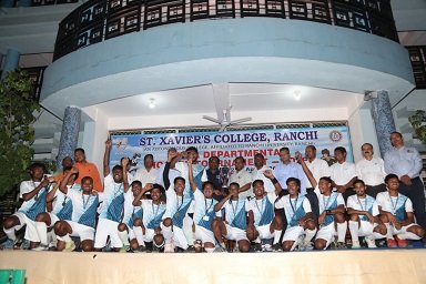 रांची : संत जेवियर्स कॉलेज में खेल विभाग ने आयोजित अन्तर विभागीय हॉकी (पुरूष) टूनार्मेंट में हिन्दी विभाग की टीम ने शानदार प्रदर्शन करते हुए विजेता का खिताब अपने नाम किया। 20 अप्रैल से 27 अप्रैल तक खेले गए मैच का फाइनल मुकाबला सोमवार को कॉलेज हॉकी ग्रांउड में खेला गया जिसमें हिन्दी विभाग ने 2-1 के अन्तर से कॉमर्स विभाग को हराकर जीता।स्पोर्ट्स इंचार्ज डॉ. राम मुर्मू ने बताया कि इस टूनार्मेंट में कॉलेज के विभिन्न विभागों पुरुष वर्ग के 8 टीमों ने भाग लिया। कॉमर्स विभाग और हिन्दी ने फाइनल तक का सफर तय किया। फाइनल मैच के बाद आयोजित पुरस्कार वितरण समारोह में मुख्य अतिथि के तौर पर पूर्व ओलंपियन मनोहर टोपनो उपस्थित रहे। उन्होंने विजेता हिन्दी विभाग के टीम को ट्रॉफी प्रदान की और उप विजेता कॉमर्स विभाग के टीम को भी ट्रॉफी देकर सम्मानित किया। टूनार्मेंट के प्लेयर आॅफ द टूनार्मेंट का खिताब हिन्दी विभाग के बसिल बारला और प्लेयर आॅफ द मैच कॉमर्स विभाग के विकास मिंज को चुना गया।