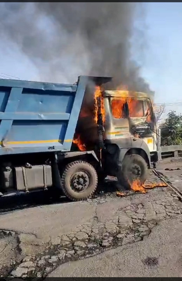 धूं धूं कर जलता हाईवा