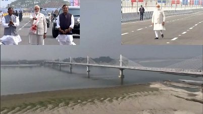 कुमार भास्कर वर्मा सेतु के उद्घाटन के बाद प्रधानमंत्री पुल पर काफी दूर तक पैदल चलकर उसका जायजा लिया। इस मौके पर असम के राज्यपाल लक्ष्मण प्रसाद आचार्य एवं मुख्यमंत्री डॉ. हिमंत बिस्व सरमा भी मौजूद थे। पुल के उद्घाटन के अवसर पर नदी के किनारे भारी संख्या में आम नागरिक भी मौजूद थे। ज्ञात हो कि, पुल के जरिए गुवाहाटी से उत्तर गुवाहाटी तक पहुंचने में मात्र सात मिनट का समय लगेगा। पहले यह दूरी वाहन के जरिए लगभग एक घंटा से अधिक और नाव के जरिए आधे घंटे में पूरी होती थी। पुल के बन जाने से गुवाहाटी में आना-जाना काफी आसान हो जाएगा। पूर्वोत्तर भारत में अपनी तरह की पहली ईएलएफ को भारतीय वायु सेना के सहयोग से डिजाइन और निर्मित किया गया है। यह आपात स्थिति में सैन्य एवं नागरिक विमानों की लैंडिंग और टेकऑफ की सुविधा प्रदान करेगी। प्राकृतिक आपदाओं या रणनीतिक जरूरतों के दौरान बचाव एवं राहत कार्यों की त्वरित तैनाती के लिए यह महत्वपूर्ण संपत्ति साबित होगी। दोहरे उपयोग वाली इस बुनियादी ढांचे को 40 टन तक वजन वाले लड़ाकू विमानों और 74 टन अधिकतम टेकऑफ वजन वाले परिवहन विमानों को संभालने में सक्षम बनाया गया है। प्रधानमंत्री माेदी का गुवाहाटी के खानापारा में भारतीय जनता पार्टी (भाजपा) की ओर से आयोजित बूथ कार्यकर्ताओं को संबोधित करने का कार्यक्रम भी आयोजित किया गया है।