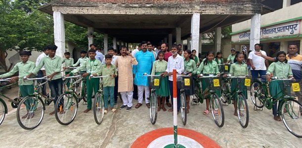 प्रतापपुर(चतरा): झारखंड सरकार की महत्वाकांक्षी योजना “उन्नति के पहिया” के तहत रविवार को प्रखंड मुख्यालय स्थित मध्य विद्यालय प्रतापपुर में आठवीं कक्षा के छात्र- छात्राओं के बीच निःशुल्क साइकिल का वितरण किया गया। इस अवसर पर कार्यक्रम में मुख्य अतिथि के तौर पर विधायक जनार्दन पासवान एवं प्रखंड प्रमुख प्रतिनिधि सह भाजपा युवा जिलाध्यक्ष कपिल पासवान, जिला पार्षद प्रतिनिधि राजन गुप्ता, पंचायत समिति प्रतिनिधि सम्मुख यादव सहित कई मौजूद थे।