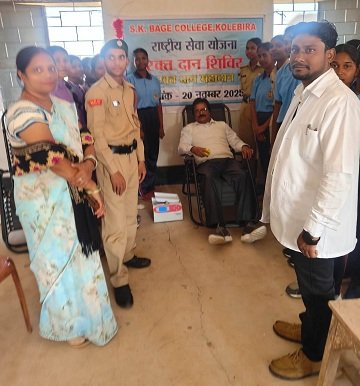 कोलेबिरा: एस के बागे कॉलेज कोलेबिरा में एनसीसी एवं एनएसएस इकाई द्वारा IQAC के तत्वाधान में तथा सदर अस्पताल के सहयोग से एकदिवसीय रक्तदान शिविर का सफल आयोजन किया गया। यह शिविर कॉलेज के सेमिनार हॉल में प्रातः 10:00 बजे प्रारंभ होकर अपराह्न 3:00 बजे तक चला। जिसमें छात्र.छात्राओं शिक्षकों और चिकित्सा टीम की उपस्थिति उल्लेखनीय रही। कार्यक्रम की शुरुआत कॉलेज के प्राचार्य प्रोफेसर अनूप कुमार गुप्ता IQAC के कोऑर्डिनेटर प्रो संजय प्रसाद, डॉ एसुचित कुमार सिन्हा, प्रो त्रिलोचन मिश्रा एवं कॉलेज के सभी शिक्षक एवं कर्मचारी की उपस्थिति पूर्ण रूप से रही। सभी ने इस पहल को समाज सेवा के दिशा में एक महत्वपूर्ण कदम बताते हुए युवाओं को मानवता के कार्यों में बढ़.चढ़कर हिस्सा लेने की प्रेरणा दी। सदर अस्पताल सिमडेगा के डीपीओ के नेतृत्व में चिकित्सा टीम तथा तकनीकी कर्मियों ने शिविर को सफल बनाने में महत्वपूर्ण भूमिका निभाई। टीम ने रक्तदाताओं का स्वास्थ्य परीक्षण कियाए आवश्यक परामर्श दिया और सुरक्षित रक्त संग्रह की प्रक्रिया को सुनिश्चित किया। पूरे आयोजन में सेवा भाव और समर्पण की भावना स्पष्ट रूप से दिखाई दी। महाविद्यालय के लगभग 20 छात्र-छात्राओं ने सुरक्षा से रक्तदान कर जरूरतमंद मरीजों के जीवन बचाने में अपना बहुमूल्य योगदान दिया। कॉलेज प्रशासन ने सभी रक्तदाताओ की सराहना की और उन्हें समाज का प्रेरणा स्रोत बताया। रक्तदान शिविर का मुख्य उद्देश्य युवाओं में रक्तदान के महत्व को रेखांकित करनाए समाज में जागरूकता बढ़ाना तथा आपातकालीन स्थितियों में उपलब्ध रक्त की कमी को दूर करने में योगदान देना था। कार्यक्रम के सफल आयोजन से कॉलेज परिसर में सहयोग सेवा और सामाजिक उत्तरदायित्व की भावना का सकारात्मक संदेश प्रसारित हुआ।