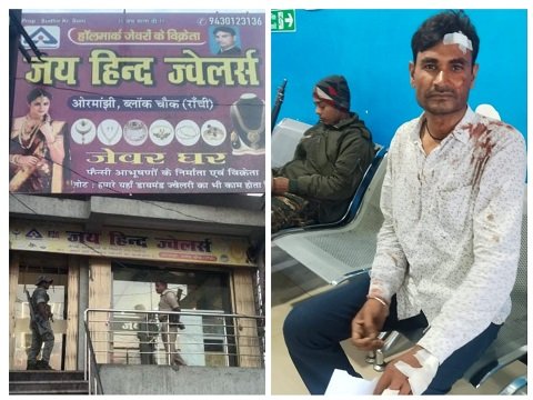 रांची : ओरमांझी थाना क्षेत्र के ब्लॉक चौक स्थित किसान कंप्लेक्स में जय हिन्द ज्वेलर्स से हथियाबंद अपराधियों ने लाखों के जेवरात व नगदी भी लूटकर फरार हो गए। घटना बिते गुरुवार की संध्या करिब 5 बजे के लगभग की बताई जाती है। घटना के संबंध में बताया गया कि 4 की संख्या में हथियारबंद अपराधी ग्राहक बनकर दुकान में प्रवेश किए थे,और अंगुठी दिखाने को कहे थे। इसी क्रम में दुकान संचालक सुधीर कुमार सोनी जैसे ही अंगुठी निकालने को निचे झुका की अपराधियों ने उसके माथे में पिस्तौल भिड़ा दिया। और शॉकेश में रखे सभी जेवरात व डब्बे में रखे अंगुठी तथा नगद करिब 50 हजार रूपये लूटकर फरार हो गए। इस बात की सूचना मिलते ही ओरमांझी थाना प्रभारी अनिल कुमार तिवारी सदल-बल के साथ घटना स्थल पर पहुंचे,तथा दुकान संचालक से पुछताछ कर घटना की विस्तृत जानाकरी ली।