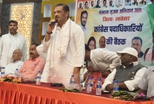 लातेहार: जिला मुख्यालय स्थित वन सह प्रखंड कार्यालय परिसर में पूजा समिति के द्वारा दुर्गापूजा के लिये एक भव्य पंडाल का निर्माण करवाया गया। यहां पर पंडाल कोलकता के प्रसिद्ध विष्णुपुर स्थित देवी मंदिर के तर्ज पर तैयार की गई है। पंडाल निर्माण का जिम्मेवारी भरत सरदार और उनके सहयोगियों ने संभाला था उन्होनें महीनों के कड़ी मेहनत से इस कलाकृति को साकारात्मक रुप प्रदान किया है। पूजा समिति के अनुसार यहां दुर्गा पूजा पिछले 25 वर्षो से पारंपरिक और धार्मिक रीति-रिवाजों के साथ में मनाया जा रहा है। प्रत्येक वर्ष यहां पर काफी संख्या में माता के दर्शन के लिये श्रद्धालुगण पहुंचते हैं। यहां पर पंडाल का सजावट एवं माता दुर्गा की प्रतिमा अत्यंत मनमोहक बना हुआ है।