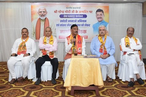 देश को आत्मनिर्भर बनाने के लिए स्वदेशी अपनाने का आह्वान : संजय सेठ ने बताया कि रांची लोकसभा क्षेत्र के विभिन्न क्षेत्रों में सोलर लाइट का उद्घाटन भी किया जाएगा। प्लास्टिक मुक्त भारत बनाने की दिशा में 25000 जुट बैक का वितरण, 25000 छाते का वितरण और 50000 परिवार के बीच सुरक्षा लॉग बुक का वितरण भी किया जाएगा। 21 सितंबर को फिट इंडिया साइक्लोथोन का सुबह 7:00 बजे मोराबादी से आयोजन होगा, जिसमें 1000 से भी अधिक लोग साइकिल के साथ शामिल होंगे। श्री कृष्ण जन्मोत्सव समिति, रांची के सानिध्य में ग्रीन होरिजन में नागरिक बैठक के संग अभिनंदन स्वागत कार्यक्रम में बोलते हुए संजय सेठ ने लोगों से देश को आत्मनिर्भर बनाने के लिए स्वदेशी अपनाने का आह्वान किया। उन्होंने कहा कि प्रधानमंत्री के स्वदेशी अपनाओ अभियान से हमारे देश की अर्थव्यवस्था को मजबूती मिलेगी। साथ ही घर-घर रोजगार मिलेगा। लघु उद्योगों को बढ़ावा सहित हर हाथ को रोजगार प्राप्त होगा। मंच संचालन समिति के अध्यक्ष मुकेश काबरा ने कहा कि माहेश्वरी सभा के जरिये 2 अक्टूबर को शस्त्र पूजा का आयोजन श्री लक्ष्मी नारायण मंदिर प्रांगण में किया जाएगा। साथ ही कई अन्य धार्मिक और सांस्कृतिक कार्यक्रम भी आयोजित किए जाएंगे। रांची से विधायक सीपी सिंह ने मौके पर कहा कि सेवा पखवाड़ा के दौरान सनातन धर्म को मजबूत करने पर जोर दिया जाएगा। कार्यक्रम में अजय मारू, मुकेश काबरा, कुणाल अजमानी, चंद्रकांत रायपत, रविंद्र मोदी, प्रमोद सारस्वत, निरंजन शर्मा, संजय पोद्दार, संजय जायसवाल, राजन तिवारी, विजय ओझा सहित अन्य लोग उपस्थित थे।