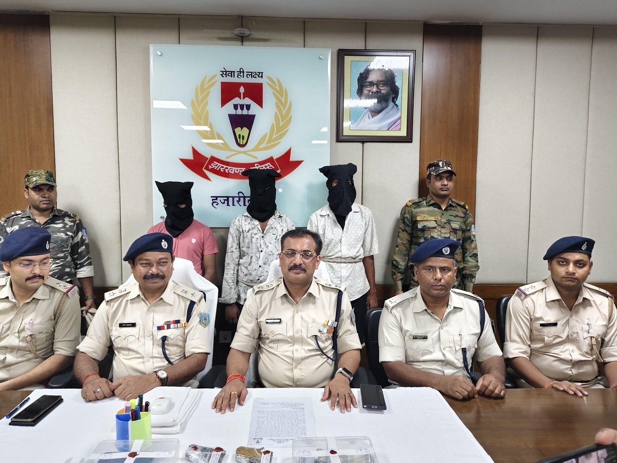 कटकमदाग/हजारीबाग: पुलिस को गुप्त सूचना मिली कि कुछ हथियारबंद अपराधी बाइक पर सवार होकर कटकमदाग थाना क्षेत्र में लूट की घटना को अंजाम देने वाले हैं। सूचना पर तत्काल कार्रवाई करते हुए अपर पुलिस अधीक्षक (मु०) के नेतृत्व में कटकमदाग थाना प्रभारी एवं सशस्त्र बल ने महुडर और विष्णुपुरी रोड पर वाहन चेकिंग अभियान चलाया। इसी दौरान दो बाइक पर सवार अपराधियों को पुलिस ने पकड़ने का प्रयास किया। तत्पश्चात तीन अपराधियों मनीष राणा उर्फ मनीष कुमार (23 वर्ष, कटकमदाग), दीपक कुमार उर्फ दीपक कुमार गुप्ता (25 वर्ष, बेलर गड़ा) और अमन कुमार उर्फ पवन सिंह (23 वर्ष, सुकरीगढ़ा बमनीडीह, रामगढ़) को पकड़ लिया गया। एक अन्य आरोपी, अभिनाश कुमार, अंधेरे का फायदा उठाकर भाग निकला।