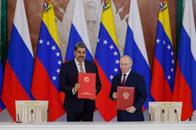 मॉस्को : रूसी राष्ट्रपति व्लादिमीर पुतिन ने सोमवार को वेनेजुएला के साथ रणनीतिक साझीदारी और सहयोग संधि को मंजूरी देते हुए इस आशय के कानून पर हस्ताक्षर किए। यह समझौता अब आधिकारिक रूप से लागू हो गया है, जो द्विपक्षीय आर्थिक, राजनीतिक, सैन्य और ऊर्जा क्षेत्रों में गहन सहयोग को मजबूत करेगा। वेनेजुएला पर मंडराते अमेरिकी हमलाें के खतराें के बीच यह द्विपक्षीय संधि पर इस साल सात मई को मॉस्को में हस्ताक्षर किये गये थे। इस पर रूसी राष्ट्रपति पुतिन और वेनेजुएला के राष्ट्रपति निकोलस मादुरो ने हस्ताक्षर किए थे।