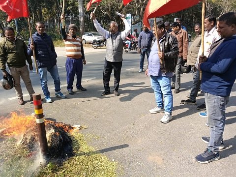 रांची: झारखंड की राजधानी रांची में बुधवार को हटिया मजदूर यूनियन (सीटू) की ओर से एचईसी मुख्यालय के समक्ष केंद्र सरकार की नई श्रम संहिताओं के विरोध में जोरदार प्रदर्शन किया गया। प्रदर्शनकारियों ने श्रम संहिताओं को मजदूर विरोधी बताते हुए सरकार का पुतला दहन किया और श्रम कानून वापस लेने की मांग उठाई। धरना–प्रदर्शन का नेतृत्व यूनियन के अध्यक्ष भवन सिंह ने किया। उन्होंने आरोप लगाया कि केंद्र सरकार द्वारा लागू की गई चारों श्रम संहिताएं मजदूरों के अधिकारों को समाप्त करने वाली हैं। उन्होंने कहा कि सरकार व भारतीय मजदूर संघ इन्हें सुधार बता रहे हैं, जबकि हकीकत में ये कॉरपोरेट और ठेकेदार व्यवस्था को बढ़ावा देने वाला कदम हैं। भवन सिंह ने कहा कि नई संहिता से पूर्व लागू न्यूनतम मजदूरी, बोनस, ग्रेच्युटी, समान वेतन और वेतन भुगतान कानून कमजोर हो गए हैं। उन्होंने बताया कि 50 से कम कर्मचारियों वाले प्रतिष्ठानों पर अधिकांश प्रावधान लागू नहीं होंगे और मालिक अपनी मनमानी कर सकेंगे। वहीं 300 कर्मचारी वाले संस्थान बिना सरकारी अनुमति के छंटनी, तालाबंदी और लॉकआउट कर सकेंगे, जो चिंताजनक है। उन्होंने कहा कि फिक्स्ड टर्म रोजगार व्यवस्था के लागू होने से स्थायी नौकरियां खत्म हो जाएंगी और 11 महीने के अनुबंध के कारण मजदूरों को ग्रेच्युटी से वंचित होना पड़ेगा। हड़ताल करने या दूसरों को प्रेरित करने पर कठोर सजा का प्रावधान भी किया गया है। प्रदर्शन के दौरान बड़ी संख्या में मजदूर, यूनियन पदाधिकारी और कार्यकर्ता मौजूद रहे। सभी ने एक स्वर में मजदूर अधिकारों की रक्षा और श्रम संहिताओं को वापस लेने की मांग की।