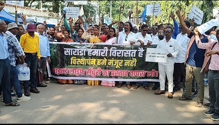 पश्चिमी सिंहभूम : पश्चिमी सिंहभूम जिला स्थित सारंडा को वाइल्ड लाइफ सेंचुरी घोषित किए जाने के प्रस्ताव के खिलाफ मंगलवार को जिले में विशाल महा जन आक्रोश रैली निकाली गई। आदिवासी मुंडा समाज विकास समिति, आदिवासी मूलवासी समिति, कोल्हान रक्षा संघ सहित दर्जनों सामाजिक संगठनों के बैनर तले हजारों ग्रामीण वेशभूषा और पारंपरिक हथियारों के साथ सड़कों पर उतरे। भीड़ हाथों में तख्तियां, झंडे और बैनर लिए हुए यह जंगल हमारा है, यह पेड़ हमारा है के नारे लगाते हुए आगे बढ़ रही थी। रैली गांधी मैदान से प्रारंभ होकर विभिन्न मार्गों से होते हुए खनन पदाधिकारी के कार्यालय पहुंची, जहां प्रतिनिधिमंडल ने अपना ज्ञापन सौंपा। इसके बाद रैली आगे बढ़कर उपायुक्त कार्यालय पहुंची, जहां सारंडा को वाइल्ड लाइफ सेंचुरी घोषित करने के प्रस्ताव को वापस लेने की मांग करते हुए ज्ञापन सौंपा गया।
