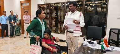 रांची: शांति देवी के लिए आज का दिन सुखद था… वो अपने घर से 100 प्रतिशत दिव्यांग बच्चे के साथ उपायुक्त-सह-जिला दण्डाधिकारी, रांची मंजूनाथ भजन्त्री के जनता दरबार के लिए निकलती हैं, उपायुक्त कार्यालय कक्ष में प्रवेश से पहले ही उनके बच्चे को ट्राई साईकिल मिल जाती है। दरअसल जैसे ही उपायुक्त मंजूनाथ भजन्त्री को सूचना मिली की एक महिला दिव्यांग बच्चे के साथ अपनी समस्या लेकर आई है तो उन्होंने फौरन अंकित के लिए ट्राईसाईकिल की व्यवस्था करने के निर्देश दिये और बच्चे को संबंधित विभाग द्वारा ट्राई साईकिल उपलब्ध करा दिया गया।