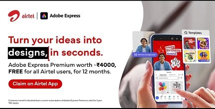 यह ऐतिहासिक और अपनी तरह की पहली साझेदारी एयरटेल के सभी ग्राहकों को एडोबी एक्सप्रेस प्रीमियम इस्तेमाल करने की सुविधा प्रदान करेगी, जिससे वे हाई क्वालिटी वाली सोशल मीडिया एसेट्स, मार्केटिंग कंटेंट, शॉर्ट वीडियो और किसी भी प्रकार के डिज़ाइन को तेज़ी से और सहज तरीके से तैयार कर सकेंगे। लगभग 4,000 रुपये मूल्य वाला एडोबी एक्सप्रेस प्रीमियम अब एक वर्ष के लिए निशुल्क उपलब्ध होगा। इसके साथ एयरटेल के सभी ग्राहक अपनी रचनात्मक क्षमताओं को खुलकर अभिव्यक्त कर सकेंगे और पेशेवर स्तर का कंटेंट तैयार कर सकेंगे, चाहे उनका डिजाइनिंग का अनुभव किसी भी स्तर का हो। एडोबी एक्सप्रेस प्रीमियम सब्सक्रिप्शन एयरटेल के सभी ग्राहकों के लिए उपलब्ध होगा, जिसमें मोबाइल, वाईफाई और डीटीएच ग्राहक शामिल हैं। ग्राहक एयरटेल थैंक्स एप पर लॉग इन करके इस सब्सक्रिप्शन का लाभ उठा सकते हैं और इसके लिए किसी भी प्रकार के क्रेडिट कार्ड की आवश्यकता नहीं होगी।