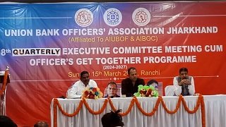 रांची : यूनियन बैंक ऑफ इंडिया के अधिकारियों के संगठन यूनियन बैंक ऑफिसर्स एसोसिएशन, झारखंड की 8वीं त्रैमासिक कार्यकारिणी समिति की बैठक सह अधिकारी मिलन समारोह का आयोजन 15 मार्च (रविवार) को लेक गार्डन बैंक्वेट हॉल, ओल्ड अरगोड़ा रोड, अरगोड़ा, रांची में संपन्न हुआ। इस अवसर पर रांची नगर में पदस्थापित यूनियन बैंक ऑफ इंडिया के 150 से अधिक अधिकारियों ने उत्साहपूर्वक सहभागिता की। समारोह को संबोधित करते हुए संगठन के महासचिव ज्योत्स्नेश्वर पांडेय ने बैंकिंग उद्योग में हाल के महत्वपूर्ण घटनाक्रमों, बैंक अधिकारियों से संबंधित समकालीन मुद्दों तथा संगठन स्तर पर चल रही गतिविधियों से उपस्थित अधिकारियों को अवगत कराया।