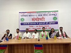 रांची: अखिल झारखंड छात्र संघ ने शुक्रवार को शहीद स्मृति सभागार, सेंट्रल लाइब्रेरी राँची में वर्तमान झारखंड में युवाओं की भूमिका विषय पर एक संगोष्ठी का आयोजन किया। इस अवसर पर झारखंड आंदोलनकारी एवं आजसू पार्टी के मुख्य प्रवक्ता देवशरण भगत मुख्य अतिथि के रूप में उपस्थित रहे। मुख्य रूप से संगोष्ठी में झारखंड की सामाजिक, शैक्षणिक और राजनीतिक परिस्थितियों पर गहन विचार-विमर्श हुआ। वक्ताओं ने बेरोजगारी, पलायन, कॉलेजों व विश्वविद्यालयों में मूलभूत सुविधाओं की कमी, छात्र संघ चुनाव, शिक्षकों की कमी तथा युवाओं की राजनीतिक भागीदारी जैसे मुद्दों पर अपने विचार रखे और इनके समाधान के लिए ठोस पहल की आवश्यकता पर बल दिया। कार्यक्रम की अध्यक्षता आजसू छात्र संघ अध्यक्ष ओम वर्मा ने की। मंच पर कार्यकारी अध्यक्ष बबलू महतो, वरिष्ठ उपाध्यक्ष ऋतुराज शाहदेव, ज्योत्स्ना केरकेट्टा, रोहित ,दीपक प्रताप सिंह,अमन साहू,रोशन नायक,सक्षम झा,रवि रोशन,अंजू तिर्की, रोशनी मुंडा,शिवम अनुष्का प्रशांत महतो,खुशूब रोशन अमर राज दुबे एवं मोहन उपस्थित रहे। सभी ने युवाओं को राज्य निर्माण की दिशा में सक्रिय भूमिका निभाने का आह्वान किया। राँची के विभिन्न कॉलेजों और विश्वविद्यालयों से आए कई छात्र-छात्राओं ने कार्यक्रम में भाग लेकर अपनी समस्याओं और सुझावों को साझा किया। संगोष्ठी का मुख्य उद्देश्य युवाओं को समाज और राज्य के विकास में अग्रणी भूमिका निभाने के लिए प्रेरित करना था।